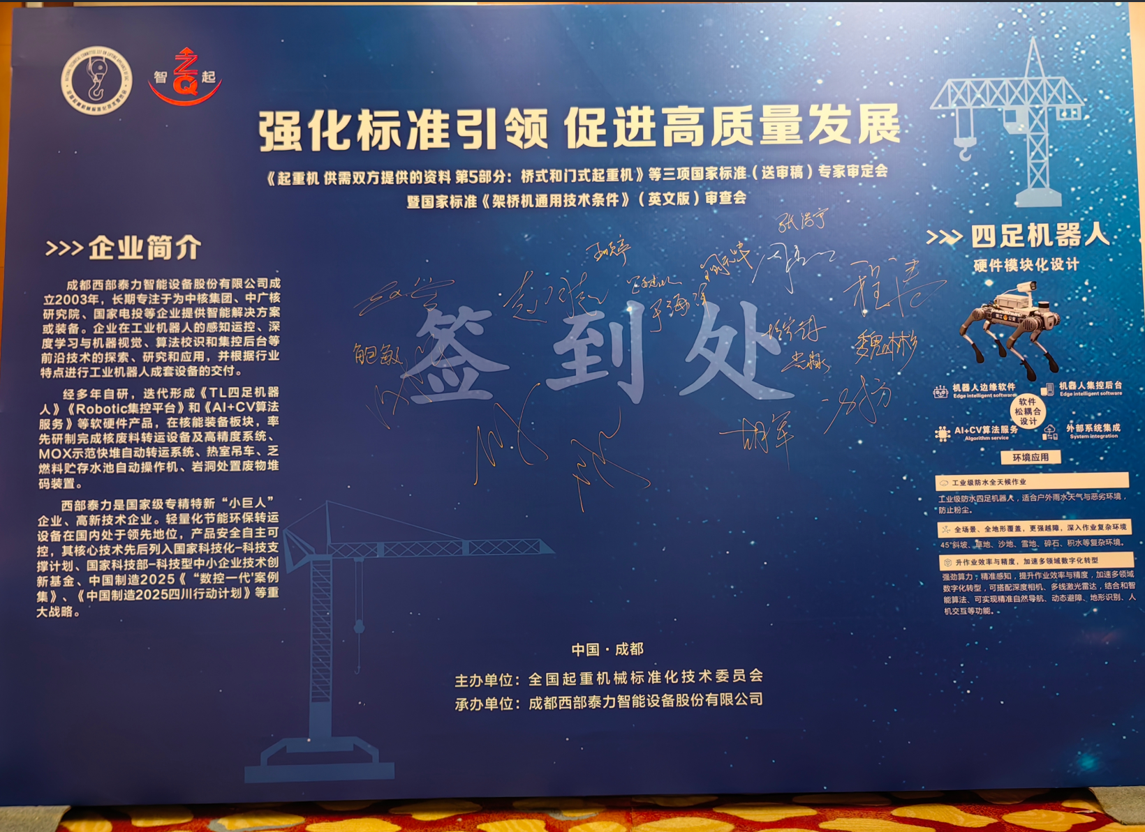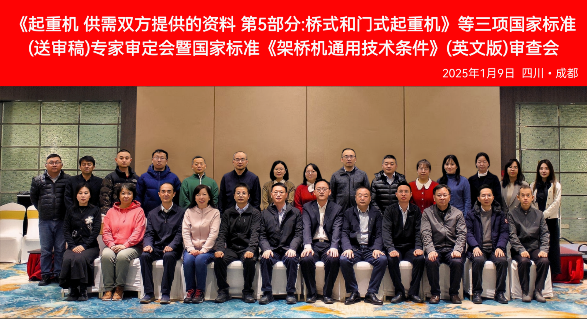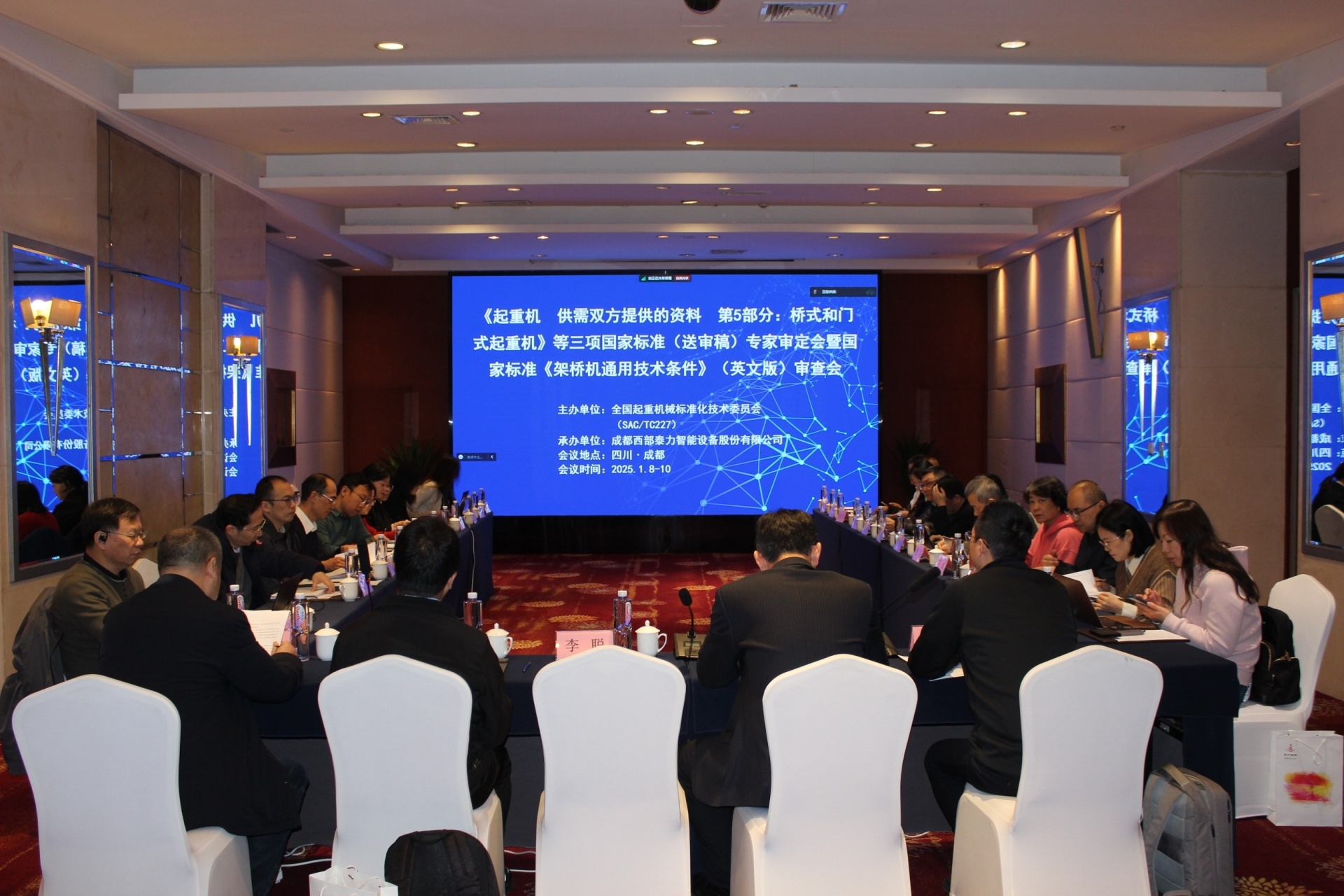 2025年1月8日至1月10日,全国起重机械标准化技术委员会(以下简称“起重机标委会”)在四川省成都市组织召开了国家标准《起重机 供需双方提供的资料 第5部分:桥式和门式起重机》(计划编号20240672-T-604)、《起重机 控制装置布置形式和特性 第5部分:桥式和门式起重机》(计划编号20240673-T-604)、《起重机 限制器和指示器 第1部分:通则》(计划编号20240680-T-604)的送审稿修订工作和国家标准《架桥机通用技术条件》英文版(计划编号W20233240)的翻译工作。承办方西部泰力邀请了四川省市场监督管理、四川省特种设备检验研究院等领导出席本次会议, 主要生产企业、检验检测机构等31名代表参加了本次会议。